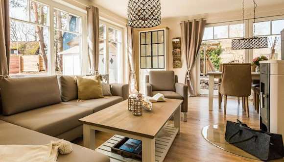 Das Ferienhaus ist ausgestattet mit 2 Schlafzimmern, einem TV mit Satellitenkanälen und einer voll ausgestatteten Küche. Diese beinhaltet einen Kühlschrank, einen Geschirrspüler, eine Waschmaschine, einen Ofen und eine Mikrowelle.