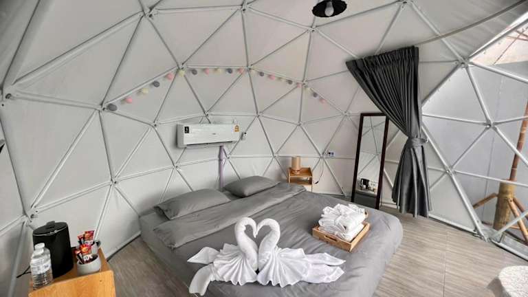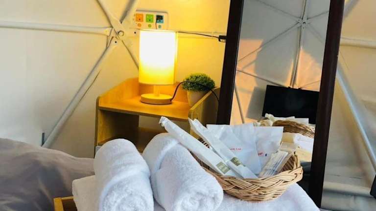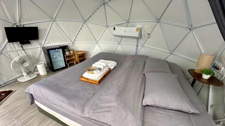 Die Zelt-Lodge ist ausgestattet mit einem Kabel Flachbild-TV und bietet Handtücher sowie Bettwäsche. Die Unterkunft ist klimatisiert und es gibt Nichtraucherzimmer. Bei Bedarf wird ein Zustellbett angeboten.