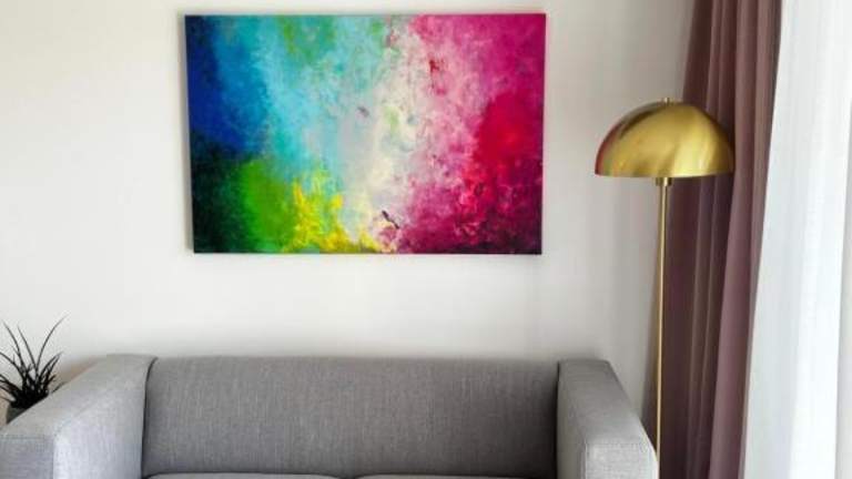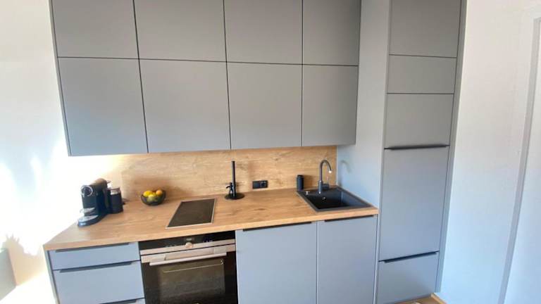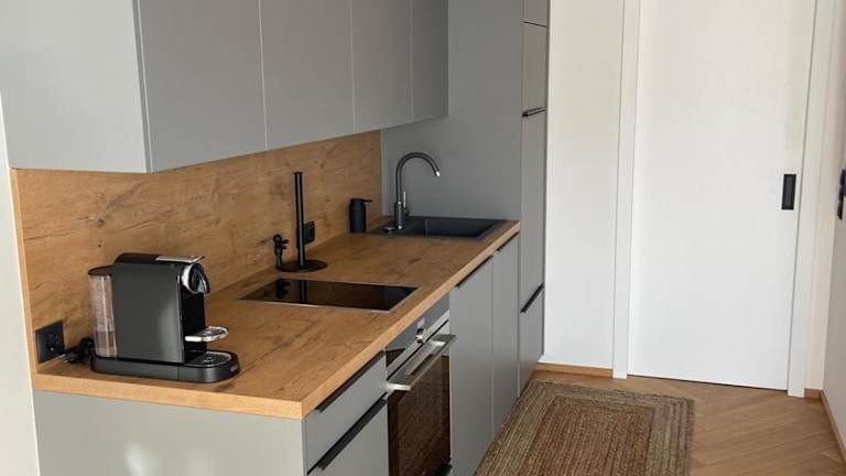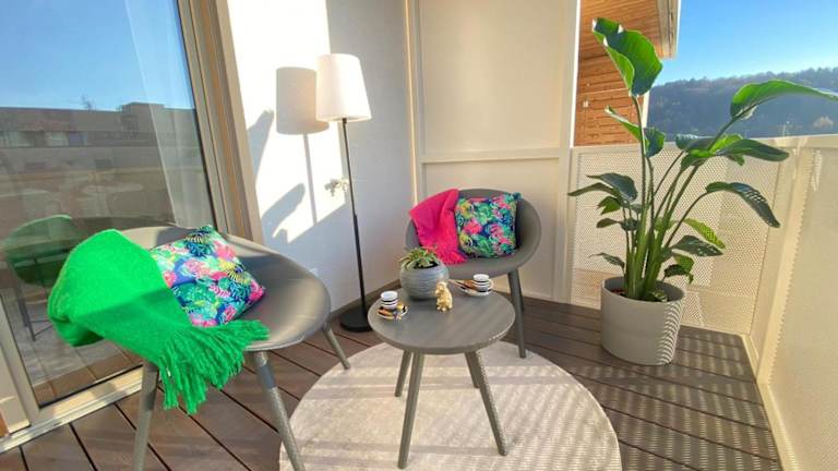 Die stylische Wohnung bietet einen Blick auf die Berge und einen eigenen Balkon. Sie ist klimatisiert und hat eine moderne Einrichtung, die Bequemlichkeit und Funktionalität vereint.