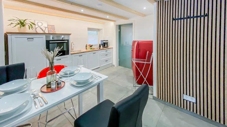 Es besteht die Möglichkeit, eine Essenslieferung in die Unterkunft zu erhalten. Zudem sind eine voll ausgestattete Küche mit Kühlschrank und Kaffeemaschine vorhanden.