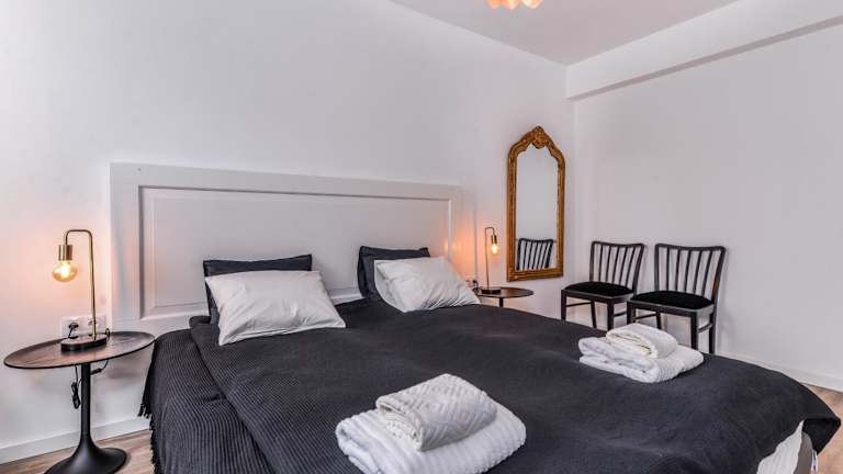 Die Ferienwohnung verfügt über zwei Schlafzimmer, ein Wohnzimmer sowie eine voll ausgestattete Küche mit Kühlschrank und Kaffeemaschine. Das Badezimmer ist mit einer Dusche ausgestattet und kostenlose Pflegeprodukte werden bereitgestellt. Handtücher und Bettwäsche werden in der Unterkunft zur Verfügung gestellt. Die Wohnung ist klimatisiert und bietet Nichtraucherzimmer.