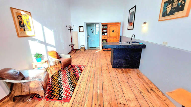 Die Ferienwohnung bietet ein Schlafzimmer sowie eine Küche, ausgestattet mit einem Kühlschrank, einer Herdplatte und einem Wasserkocher. Handtücher und Bettwäsche werden zur Verfügung gestellt.