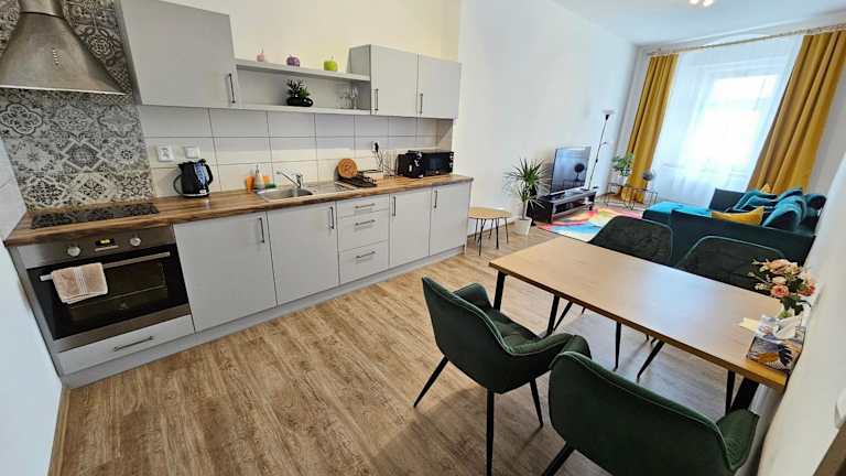 Die Unterkunft Stylový byt v srdci Hradce Králové bietet eine heimelige Ferienwohnung mit Stadtblick und kostenlosem Wifi. Check-in ist ab 15:00 Uhr möglich, während der Check-out bis 10:00 Uhr stattfindet. Es sind keine Feiern wie Junggesellenabschiede erlaubt. Mindestalter für den Check-in ist 18 Jahre, und Haustiere sind nicht gestattet.