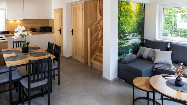 Stylowe Osiedle Wieleń - domy wakacyjne bietet klimatisierte Wohneinheiten mit eigenem Badezimmer, Flachbild-TV und voll ausgestatteter Küchenzeile. Für die Gäste steht ein kostenloser Privatparkplatz zur Verfügung. Die Unterkunft wird von einem privaten Gastgeber geführt.