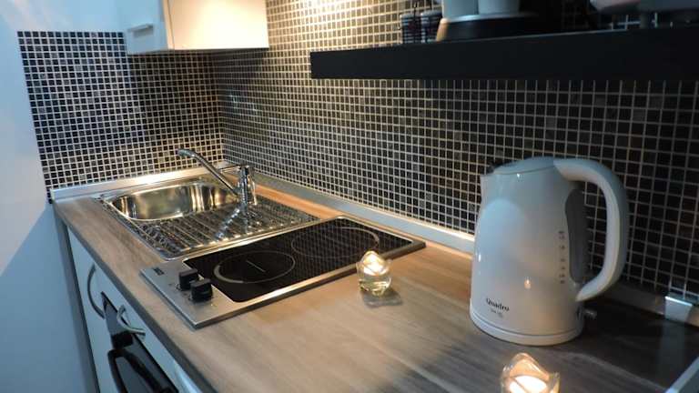 Die Apartments sind voll ausgestattet mit einer Küche, die einen Kühlschrank, einen Ofen, eine Mikrowelle, eine Herdplatte, einen Toaster, eine Kaffeemaschine und einen Wasserkocher enthält. Jedes Apartment verfügt zudem über einen Sitzbereich, einen Satelliten-Flachbild-TV sowie ein eigenes Badezimmer mit einer Dusche und kostenlosen Pflegeprodukten. Bettwäsche, Handtücher und Wäsche werden nach den Richtlinien der örtlichen Behörden gewaschen.
