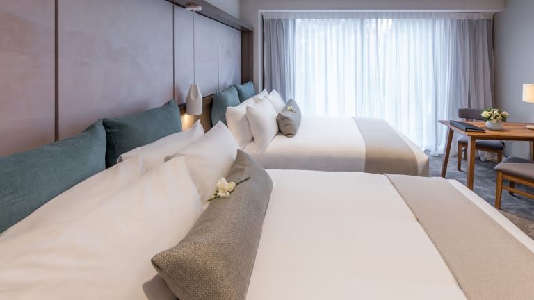 Die Zimmer sind mit Klimaanlage, Heizung und Teppichboden ausgestattet. Zur Ausstattung gehören ein Doppel-, Queensize- oder Kingsize-Bett, ein Safe, ein Schreibtisch sowie eine Kochnische mit Kühlschrank, Mikrowelle und Tee-/Kaffeezubereiter. Jedes Zimmer bietet zusätzlich Hausschuhe, einen Fernseher mit Satellitenempfang sowie ein geräumiges Badezimmer mit Dusche, Badewanne, Föhn und Kosmetikartikeln.