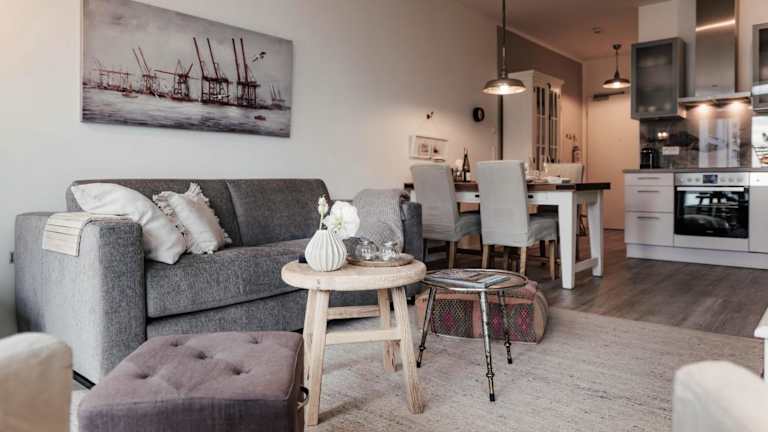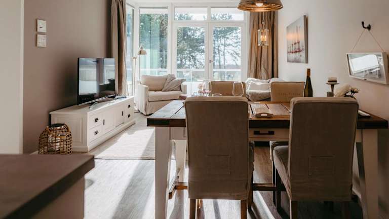 Die Ferienwohnung umfasst ein Schlafzimmer und ein Wohnzimmer, welches mit einem Satelliten Flachbild-TV und einem Blu-ray-Player ausgestattet ist. Eine voll ausgestattete Küche ist ebenfalls vorhanden. Handtücher und Bettwäsche werden bereitgestellt.