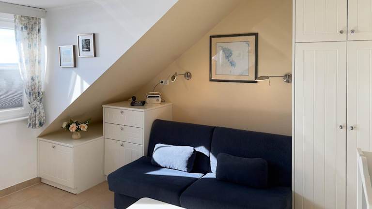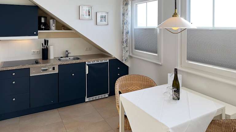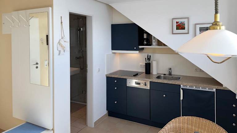 Die Unterkunft Südspitze 34 Whg. 26 bietet Übernachtungsmöglichkeiten mit herrlichem Meerblick. Die Ferienwohnung ist modern eingerichtet und umfasst ein Wohnzimmer sowie eine voll ausgestattete Küche mit Kühlschrank und Geschirrspüler. Die Gäste können einen TV mit Satellitenkanälen nutzen. Es handelt sich um eine Nichtraucherunterkunft, in der weder Junggesellenabschiede noch ähnliche Feiern erlaubt sind.