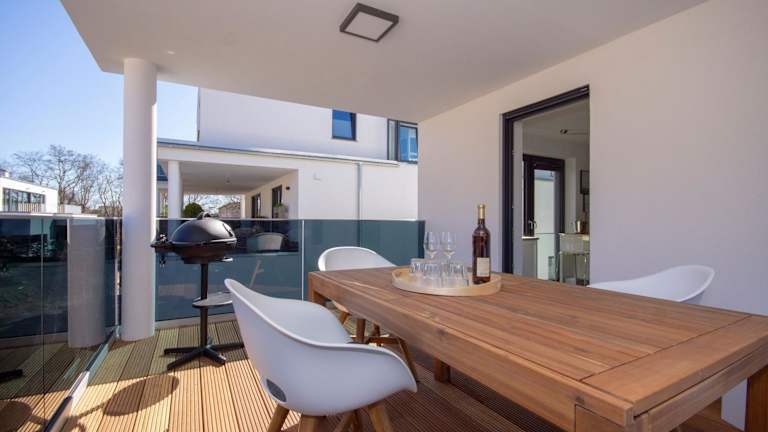 Die Unterkunft Südstrandquartier, Cor bietet ein heimeliges Ambiente und ist ideal für Familien. Die Ferienwohnung beinhaltet 4 Schlafzimmer, einen Flachbild-TV mit Satellitenkanälen und eine gut ausgestattete Küchenzeile.