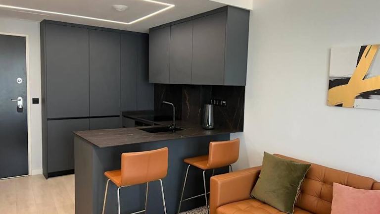 Die Ferienwohnung verfügt über ein separates Schlafzimmer, eine voll ausgestattete Küche mit Kühlschrank und Ofen sowie ein Badezimmer. Ein TV sorgt für Unterhaltung. Die Wohnung ist klimatisiert und bietet ein einladendes Ambiente.