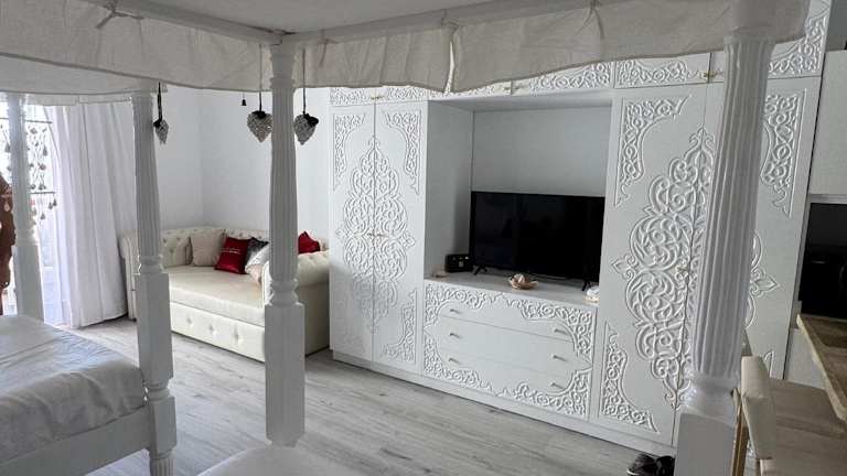 Die Ferienwohnung ist mit einem Schlafzimmer, einer Küche (ausgestattet mit Kühlschrank und Geschirrspüler), einem Flachbild-TV sowie einem Sitzbereich eingerichtet. Das Badezimmer verfügt über ein Bidet. Handtücher und Bettwäsche werden bereitgestellt. Die Ferienwohnung bietet zudem einen Blick auf die Stadt.