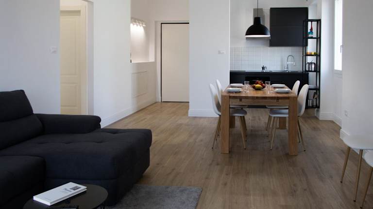 Die Ferienwohnung verfügt über 2 Schlafzimmer, ein Wohnzimmer mit Flachbild-TV, eine gut ausgestattete Küche mit Kühlschrank und Ofen sowie 2 Badezimmer mit Bidet. Zusätzlich steht ein Balkon mit Stadtblick zur Verfügung. Handtücher und Bettwäsche werden bereitgestellt.