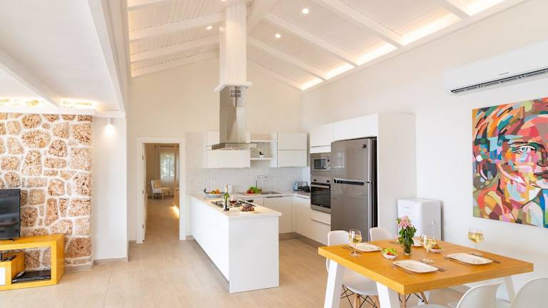 Das Ferienhaus besteht aus zwei Schlafzimmern, einem Wohnzimmer sowie einer voll ausgestatteten Küche mit Kühlschrank und Kaffeemaschine. Es gibt zwei Badezimmer mit Dusche und Whirlpool. Handtücher und Bettwäsche sind in der Unterkunft verfügbar.