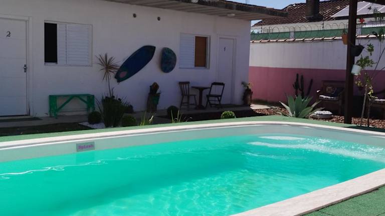 Das Suíte Master Refúgio das Ostras in Guarujá ist die perfekte Unterkunft für einen entspannten Strandurlaub. Mit nur 300 m Entfernung zum Strand Enseada bietet es eine ideale Lage, um das Meer und den feinen Sandstrand zu genießen. Das Apartment verfügt über einen eigenen Pool und einen Garten, in dem Sie sich erholen können. Die voll ausgestattete Küchenzeile ermöglicht es Ihnen, Ihre eigenen Mahlzeiten zuzubereiten, und die Terrasse bietet einen herrlichen Blick auf den Pool. Kostenfreie Privatparkplätze stehen ebenfalls zur Verfügung.