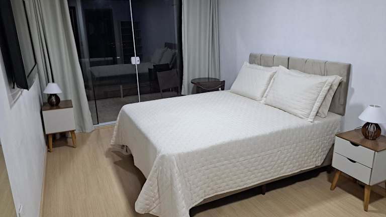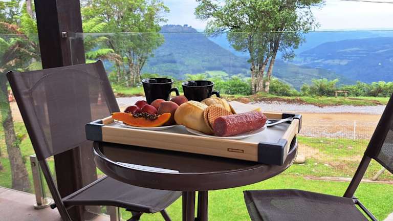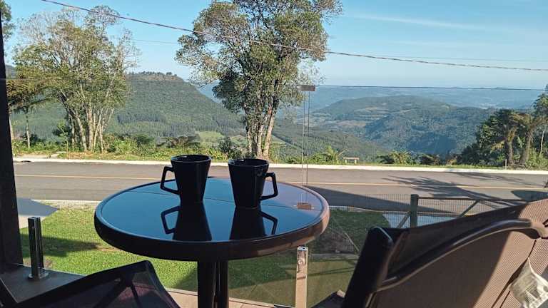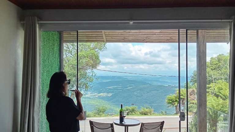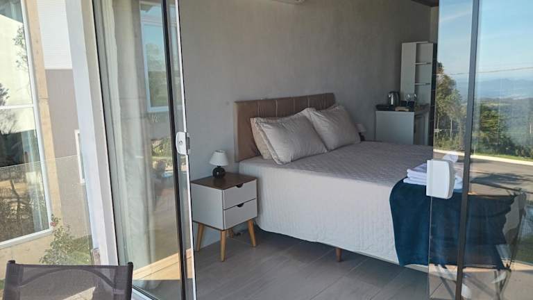 Die Suíte Master vista vale em Canela bietet einen atemberaubenden Stadtblick und ist mit einer Terrasse und einem Balkon ausgestattet. Es handelt sich um ein Privatzimmer, das eine heimelige Atmosphäre ausstrahlt und sich ideal für entspannte Ferien eignet.