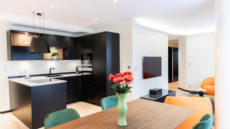 Die Ferienwohnung besteht aus 2 Schlafzimmern, einem Wohnzimmer und einer voll ausgestatteten Küche mit Kühlschrank und Kaffeemaschine. Das Badezimmer ist mit einer Dusche und einem Whirlpool ausgestattet. Zudem gibt es einen Flachbild-TV mit Satellitenkanälen, einen Blu-ray-Player, einen DVD-Player und einen CD-Player. Schallisolierte Zimmer sind vorhanden, um die Bequemlichkeit der Gäste zu erhöhen.