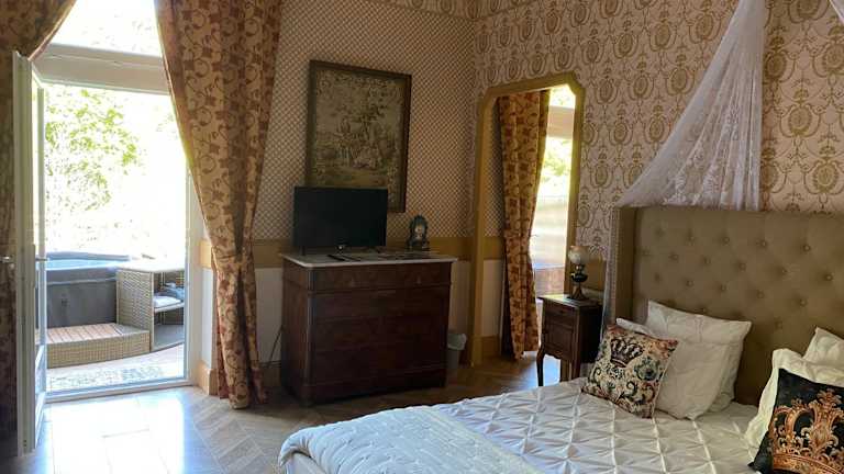 Suite romantique d'Isoarde des Baux - Château de Rochetaillée bietet eine charmante Bed & Breakfast-Erfahrung mit einem saisonalen Außenpool, einem Garten und einem eigenen Strandbereich. Die Unterkunft eignet sich ideal für Erwachsene und hat strenge Richtlinien für Feiern oder größere Gruppen. Gepflegte Annehmlichkeiten und eine entspannende Atmosphäre werden geboten.