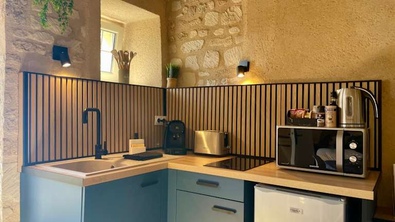Die Unterkunft bietet die Möglichkeit, Frühstück im Zimmer zu geniessen. Zusätzlich gibt es ein Café vor Ort, in dem Heissgetränke und Snacks serviert werden können. Für zusätzliche Gebühren sind Wein und Sekt erhältlich. Es stehen Grillmöglichkeiten zur Verfügung, die eine gesellige Atmosphäre am Abend fördern.
