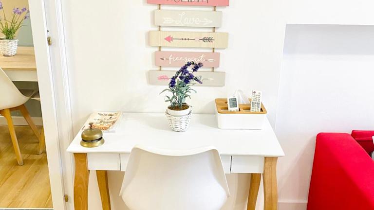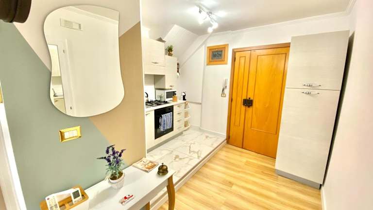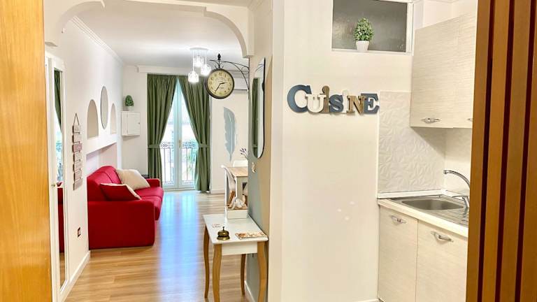 Die Ferienwohnung besteht aus einem Schlafzimmer, einem Wohnzimmer und einer voll ausgestatteten Küche mit Kühlschrank und Kaffeemaschine. Zur weiteren Ausstattung gehören ein Badezimmer mit Bidet und Dusche. Handtücher und Bettwäsche werden bereitgestellt. Des Weiteren stehen ein Balkon und ein Wasserkocher zur Verfügung.