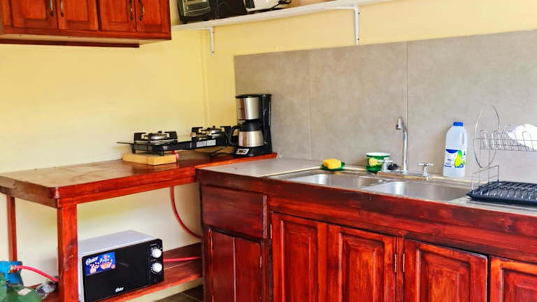 Die Villa verfügt über eine voll ausgestattete Küche mit einem Ofen und einer Kaffeemaschine, sodass die Gäste ihre eigenen Mahlzeiten zubereiten können. Es werden auch Lunchpakete angeboten.