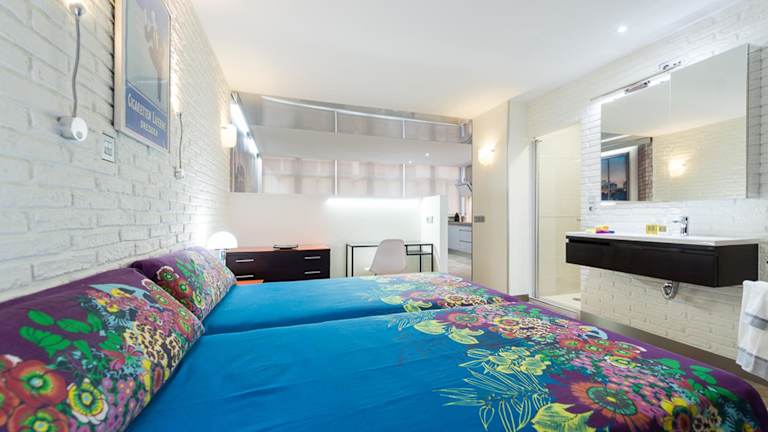 Die Ferienwohnung der Suites Garden Loft Dalí besteht aus einem Schlafzimmer, einem Wohnzimmer und einer voll ausgestatteten Küche mit Kühlschrank und Kaffeemaschine. Das Badezimmer ist mit einer Dusche und kostenlosen Pflegeprodukten ausgestattet. Handtücher und Bettwäsche werden zur Verfügung gestellt. Die Ferienwohnung ist klimatisiert.