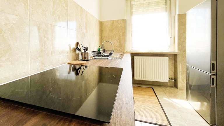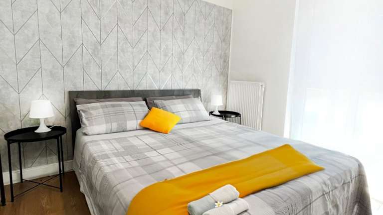 Die Ferienwohnung verfügt über 3 Schlafzimmer, ein Wohnzimmer und eine voll ausgestattete Küche. Diese umfasst einen Kühlschrank und eine Kaffeemaschine. Es stehen 2 Badezimmer zur Verfügung, ausgestattet mit Bidet und Dusche. Handtücher und Bettwäsche werden bereitgestellt. Die Unterkunft bietet zudem Annehmlichkeiten wie Klimaanlage und Heizung.