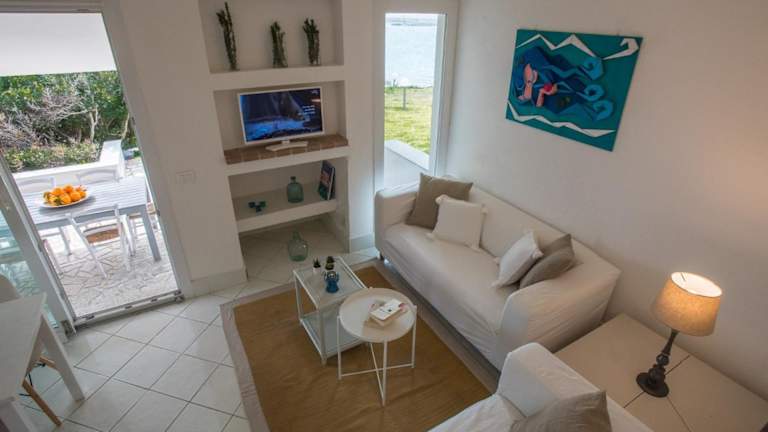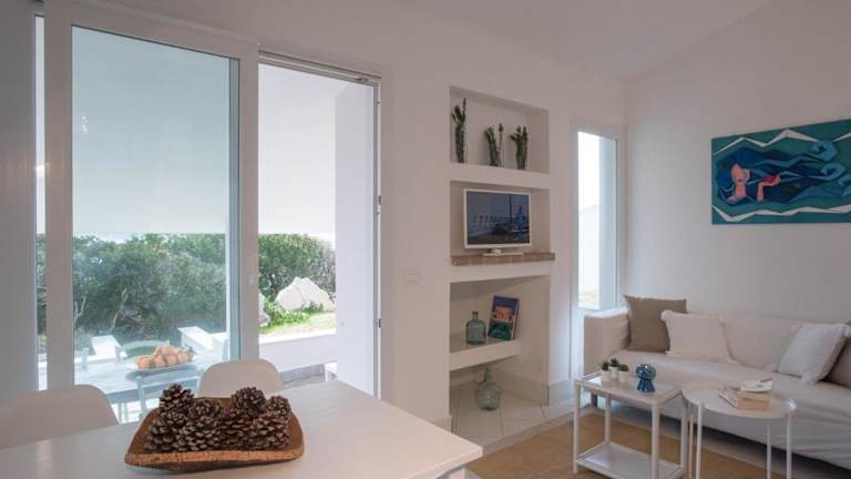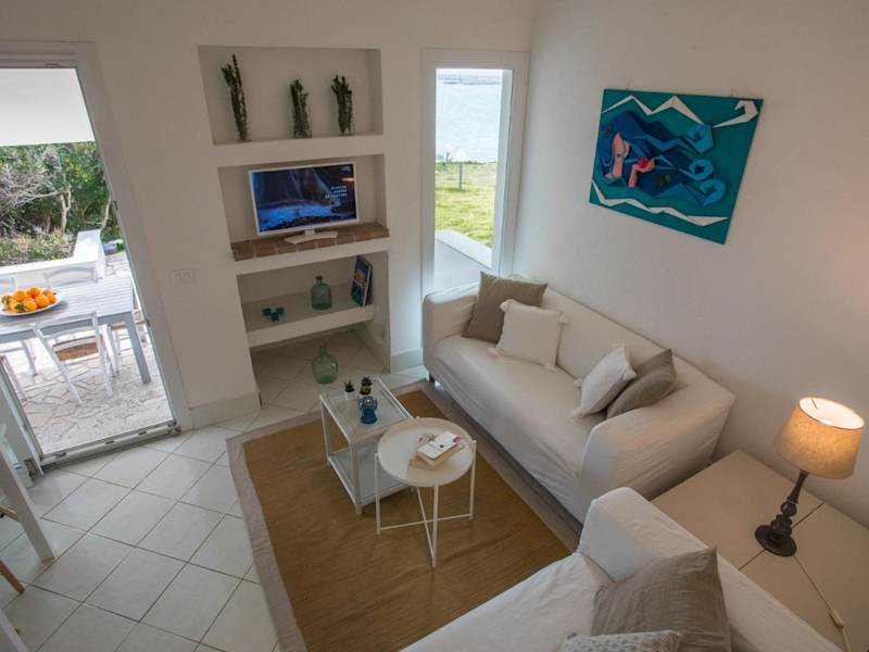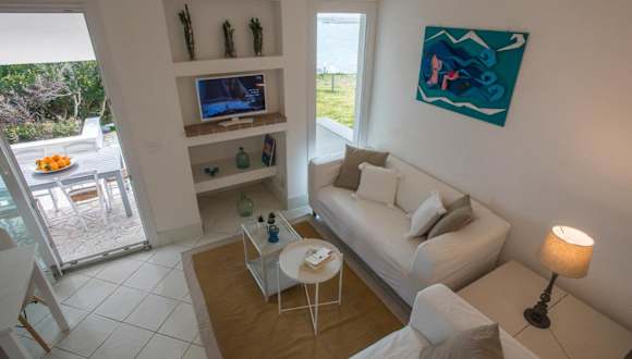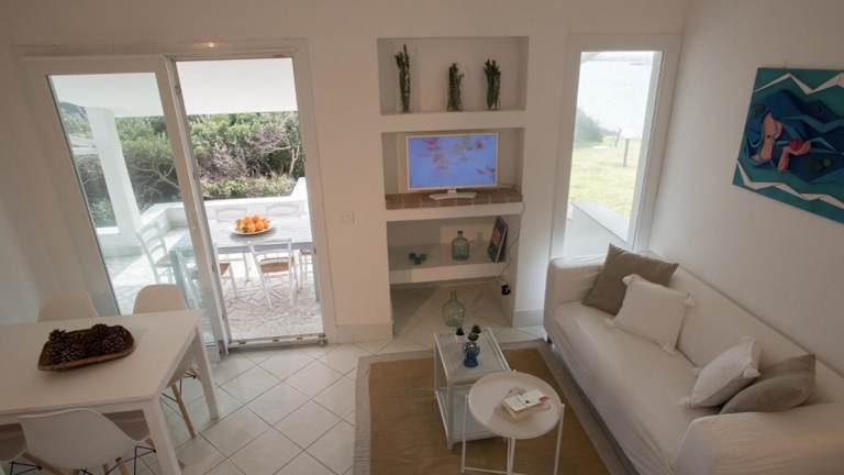 Das Ferienhaus ist klimatisiert und umfasst zwei Schlafzimmer. Es bietet Zugang zu einer Veranda bzw. Patio mit Blick auf den Garten sowie einer Terrasse mit Meerblick. Zur Ausstattung gehören ein Satelliten Flachbild-TV, eine gut ausgestattete Küche mit Kühlschrank, Geschirrspüler und Mikrowelle sowie ein Badezimmer mit Bidet und Haartrockner.