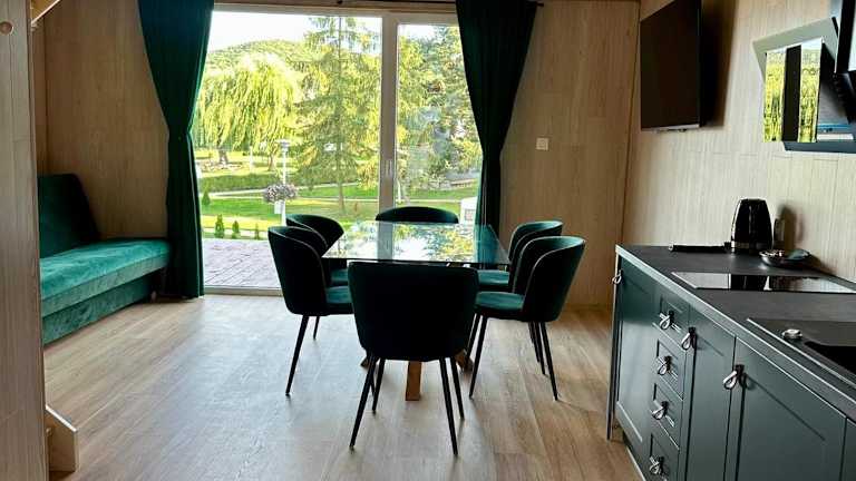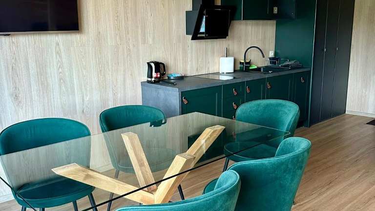 Die Wohneinheiten im SuliCamp Kompleks Wypoczynkowy sind mit modernen Annehmlichkeiten ausgestattet, einige verfügen sogar über eine Küchenzeile mit Geschirrspüler und Mikrowelle. Es sind Nichtraucherzimmer verfügbar, die Bequemlichkeit und Raum für Familien bieten.
