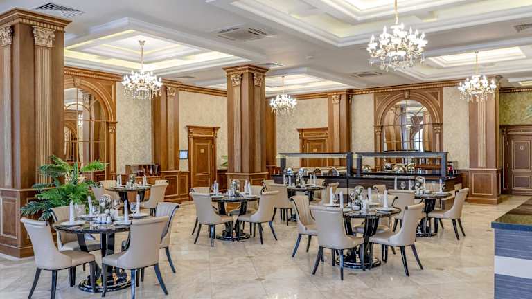 Das Hotel verfügt über ein Restaurant, das amerikanische, chinesische und griechische Küche anbietet. Auf Anfrage werden auch vegetarische, halal-zubereitete und koschere Optionen bereitgestellt.