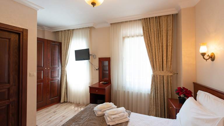 Die Zimmer im Hotel Sultanahmet's Çesme sind modern und stilvoll eingerichtet. Sie verfügen über Klimaanlage, kostenfreies WLAN, einen Flachbild-TV und eine Minibar. Kostenloses Tee- und Kaffeezubehör steht Ihnen ebenfalls zur Verfügung. Die Badezimmer sind mit modernen Armaturen ausgestattet.