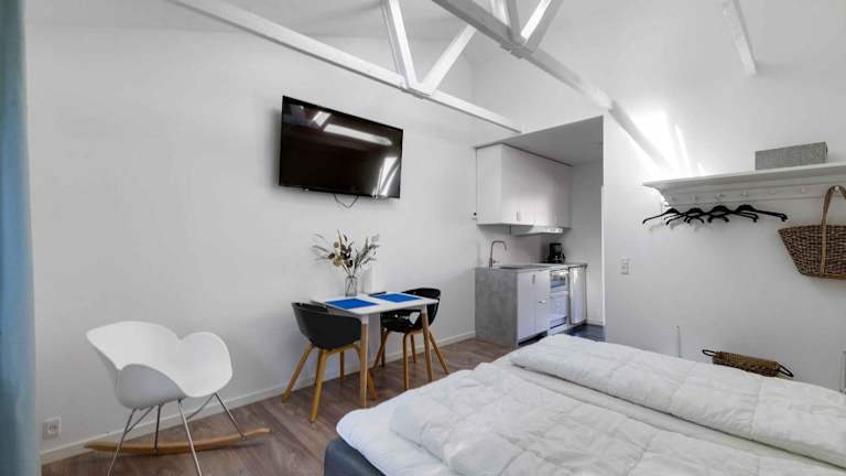 Die Ferienwohnung besteht aus 1 Schlafzimmer, einem Wohnzimmer und einer voll ausgestatteten Küche mit Kühlschrank und Kaffeemaschine. Das Badezimmer ist mit einer Dusche ausgestattet. Zur weiteren Ausstattung gehört ein Flachbild-TV.