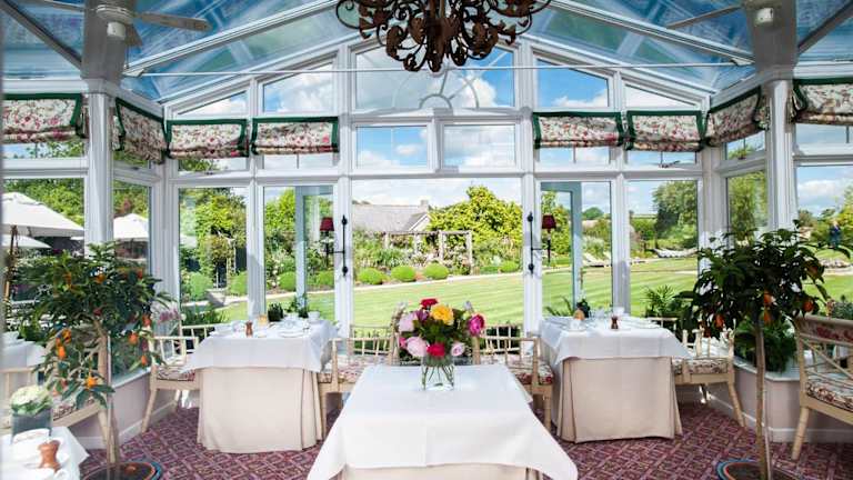 Das Hotelrestaurant bietet gehobene Küche und eine Auswahl seltener Weine. Es sind auch Nachmittagstee und ein warmes Frühstück erhältlich. Die Lounges servieren Getränke, Snacks sowie Guetzli und sind mit offenen Kaminen und Antiquitäten ausgestattet. Zimmerservice und spezielle Speisen für Ernährungsbedürfnisse werden auf Anfrage angeboten.