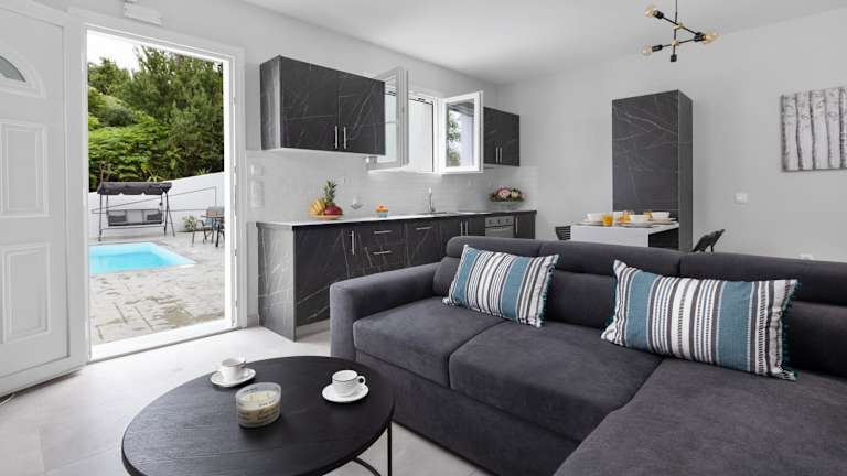 Erleben Sie einen unvergesslichen Aufenthalt in der Summer Stories Pool Villa in Potamós. Diese Villa bietet einen eigenen saisonalen Außenpool, kostenfreies WLAN und einen atemberaubenden Blick auf den Pool. Genießen Sie die Privatsphäre und den Komfort dieser klimatisierten Villa mit einem Schlafzimmer, einem geräumigen Wohnzimmer und einer voll ausgestatteten Küche. Das Badezimmer ist mit einer Dusche und kostenlosen Pflegeprodukten ausgestattet. Handtücher und Bettwäsche werden gestellt. Die Villa befindet sich in der Nähe des Alykes Potamou Strandes und des Hafens von Korfu. Der internationale Flughafen Korfu ist nur 6 km entfernt.