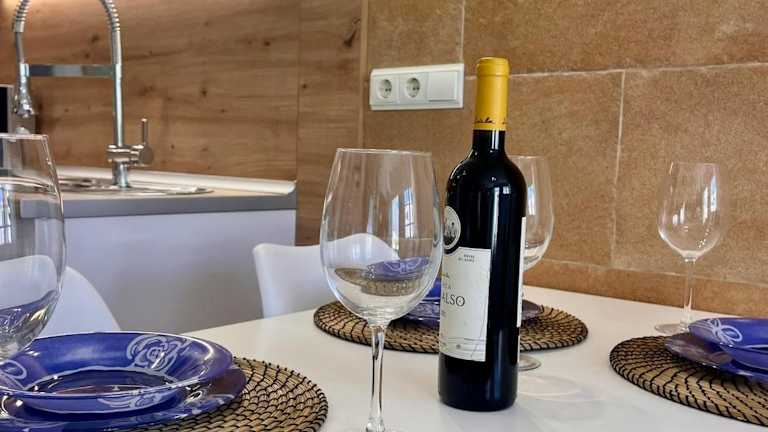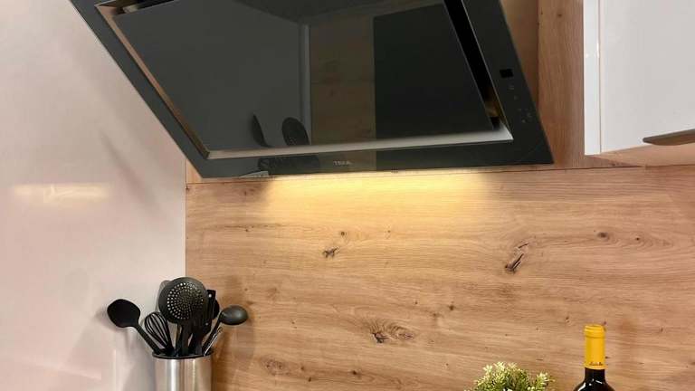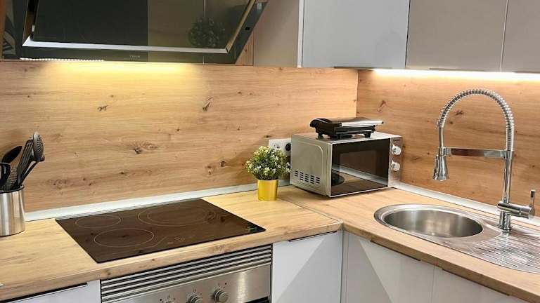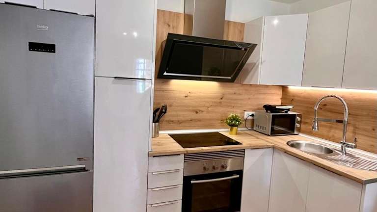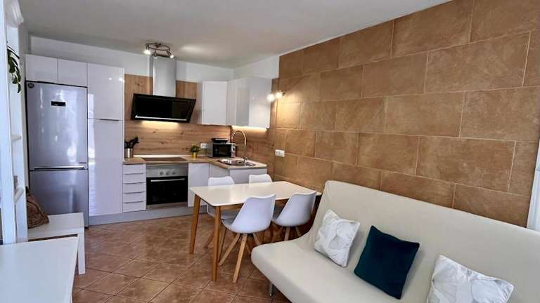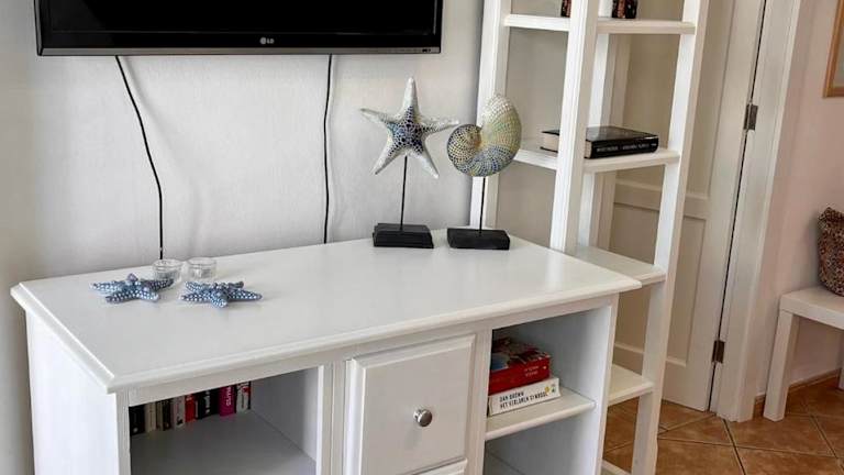 Die Ferienwohnung umfasst eine Terrasse, ein Schlafzimmer, ein Wohnzimmer und eine gut ausgestattete Küche. Zudem ist ein Flachbild-TV vorhanden.