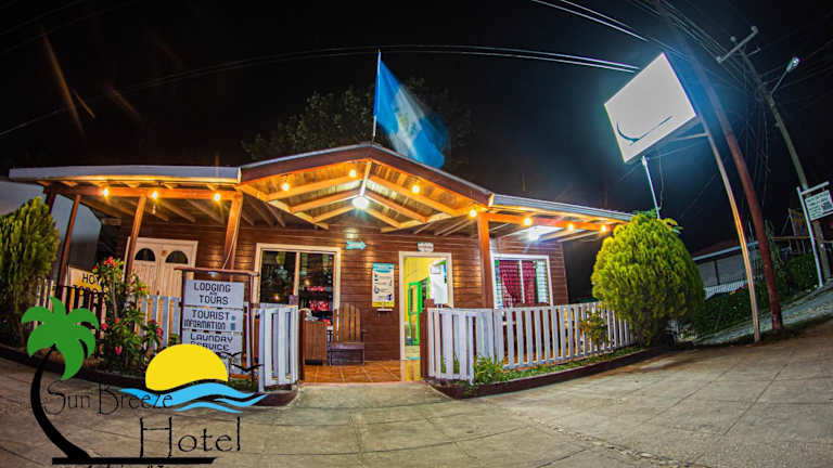 Das Sun Breeze Hotel befindet sich in El Remate, 34 km vom Nationalpark Tikal entfernt und bietet eine angenehme Umgebung mit einem Garten und einer Terrasse.