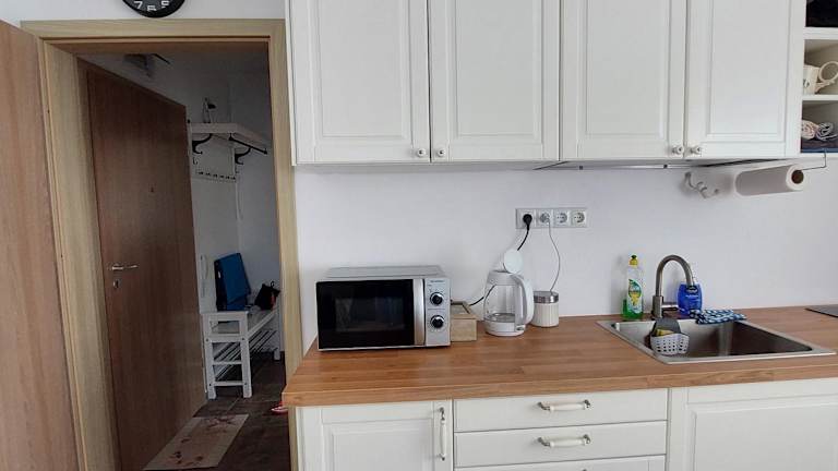 Die Ferienwohnung umfasst 1 Schlafzimmer, ein Wohnzimmer, eine voll ausgestattete Küche mit Kühlschrank und Kaffeemaschine sowie 1 Badezimmer mit Dusche und Haartrockner. Es werden Handtücher und Bettwäsche bereitgestellt. Die Unterkunft bietet zudem einen Balkon mit Blick auf den Pool.