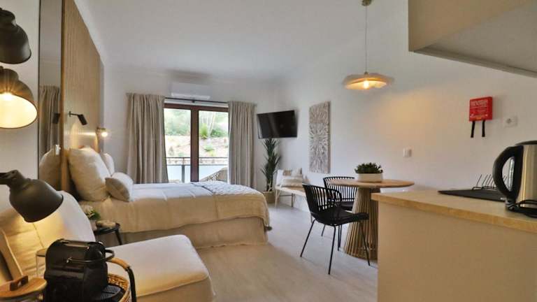 Die Ferienwohnung bietet eine moderne Ausstattung mit einem Schlafzimmer, Klimaanlage, einem Essbereich und einer voll ausgestatteten Küche mit Mikrowelle und Herdplatte. Zudem stehen den Gästen ein Satelliten-Flachbild-TV und kostenloses WLAN zur Verfügung. Handtücher und Bettwäsche werden ebenfalls zur Verfügung gestellt.