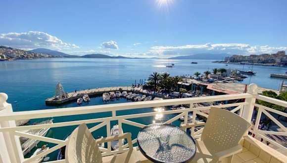 Die Zimmer im Sun N Blue Hotel sind mit Klimaanlage, Schreibtisch und Balkon mit Meerblick ausgestattet. Jedes Zimmer verfügt über ein eigenes Badezimmer, Flachbild-TV, Kühlschrank sowie über Bettwäsche und Handtücher.