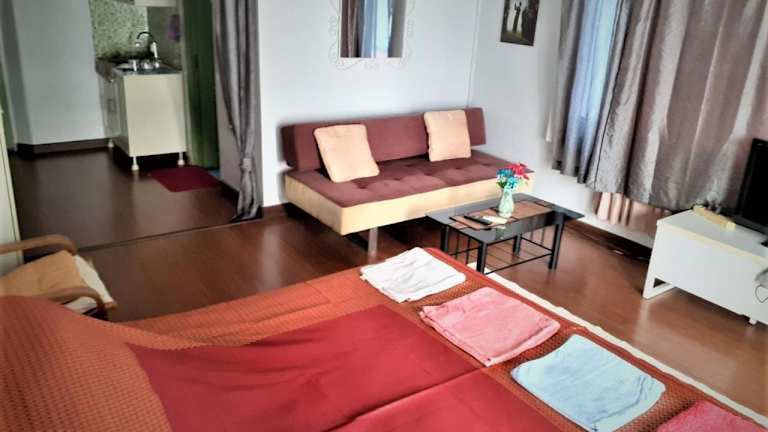Die Ferienwohnung besteht aus einem Schlafzimmer und einer voll ausgestatteten Küchenzeile. Sie verfügt über Klimaanlage, einen Balkon mit Gartenblick und einen Flachbild-TV. Zudem ist kostenloses Wifi in der Unterkunft verfügbar.
