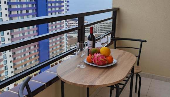 Die Ferienwohnung besteht aus einem Schlafzimmer, einem Wohnzimmer mit Flachbild-TV, einem Balkon mit Stadtblick, sowie einer gut ausgestatteten Küche mit Kühlschrank und Mikrowelle. Es gibt ein Badezimmer mit Dusche, und die Gäste erhalten Handtücher sowie Bettwäsche. Die Unterkunft ist ein Nichtraucherbereich.