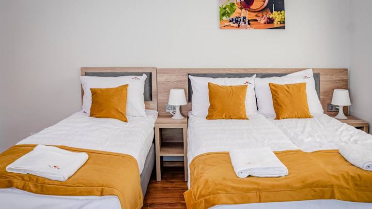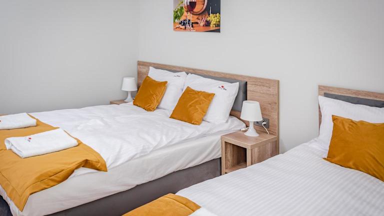 SUN & WINE bietet Übernachtungsmöglichkeiten in einer angenehmen Umgebung mit einem Garten, einer Terrasse und Grillmöglichkeiten. Zusätzlich sind Parkiermöglichkeiten vorhanden, die den Gästen eine bequeme Anreise ermöglichen. Die Unterkunft stellt auch Zimmerservice zur Verfügung und verfügt über kostenloses Wifi.