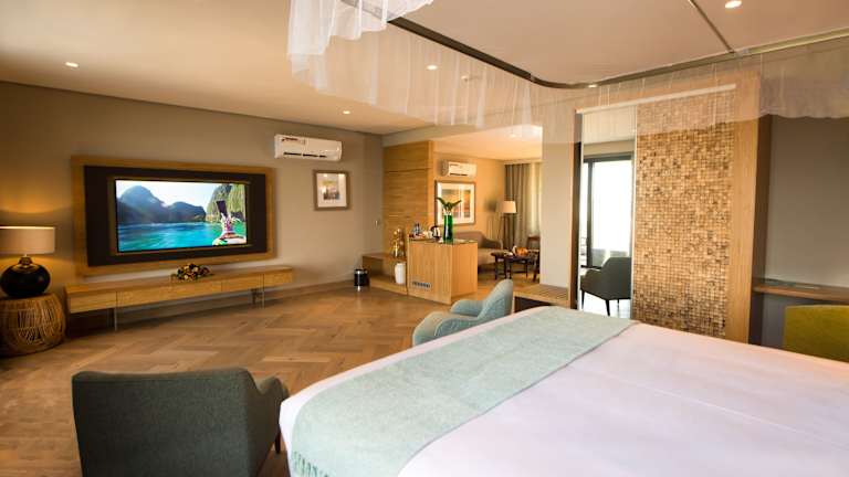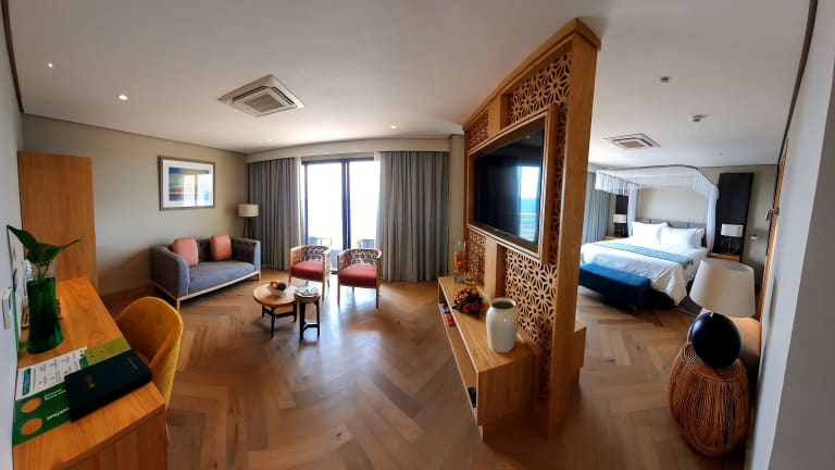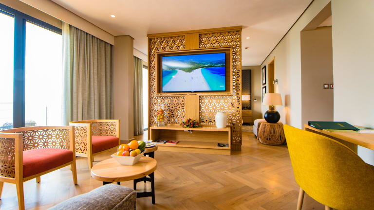 Die klimatisierten Zimmer der Unterkunft sind ausgestattet mit einem Schreibtisch, einem Wasserkocher, einem Kühlschrank, einer Minibar, einem Safe, einem Flachbild-TV, einem Balkon und einem eigenen Badezimmer mit einer Dusche. Bettwäsche und Handtücher sind ebenfalls in jedem Zimmer vorhanden.