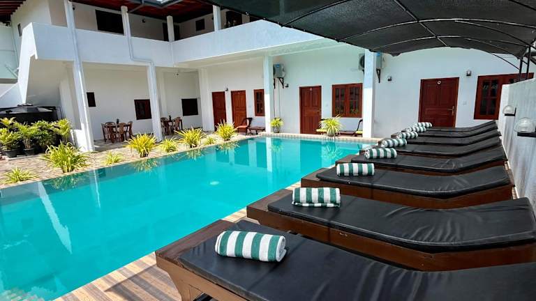 Die Unterkunft Sundowners Guesthouse befindet sich in Hikkaduwa, nur 30 Meter vom Strand Narigama entfernt. In der näheren Umgebung befinden sich weitere Strände, wie der Strand Hikkaduwa in 1,6 km Entfernung. Die Sehenswürdigkeiten wie das Internationale Kricketstadion Galle, die Niederländische Kirche Galle und das Galle Fort sind jeweils ca. 17 bis 18 km entfernt. Der nächstgelegene Flughafen, Koggala, liegt 30 km von der Unterkunft entfernt.