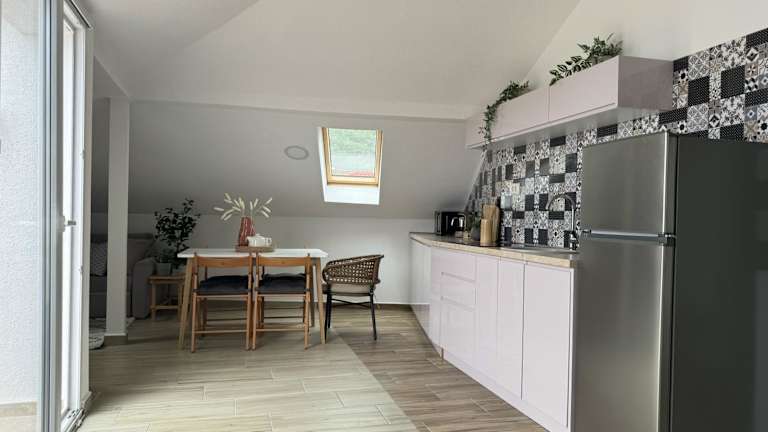 Die Ferienwohnung besteht aus 1 Schlafzimmer, einem Wohnzimmer sowie einer voll ausgestatteten Küche mit Kühlschrank und Wasserkocher. Das Badezimmer ist mit einer Dusche sowie kostenlosen Pflegeprodukten ausgestattet. Handtücher und Bettwäsche werden bereitgestellt.