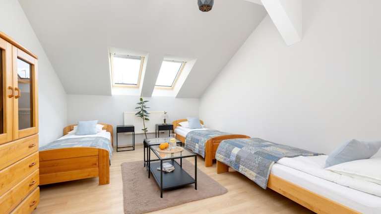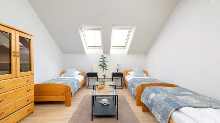 Die Ferienwohnung umfasst 2 Schlafzimmer, ein Wohnzimmer und eine voll ausgestattete Küche, die mit einem Kühlschrank und einer Kaffeemaschine ausgestattet ist. Des Weiteren stehen 1 Badezimmer mit Dusche und Haartrockner zur Verfügung. Handtücher und Bettwäsche werden bereitgestellt.