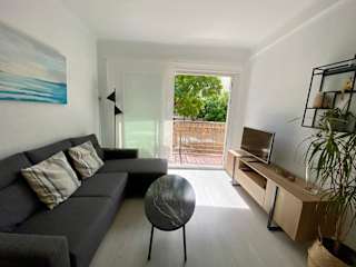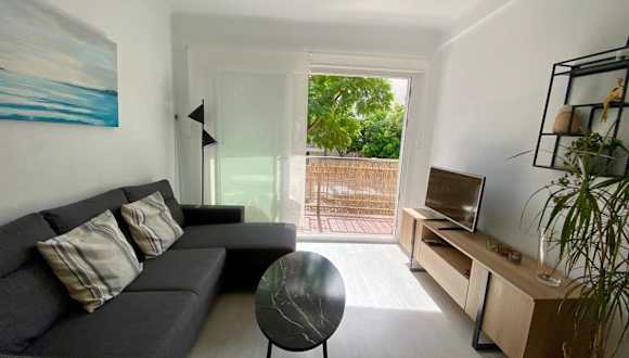 Die Unterkunft SUNNY APARTMENT NEAR THE BEACH bietet eine klimatisierte Ferienwohnung mit einer einladenden Garten- und Terrassenlandschaft.