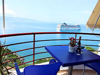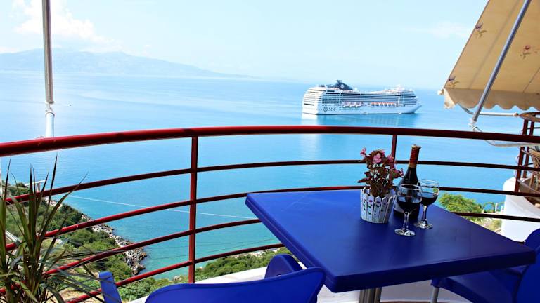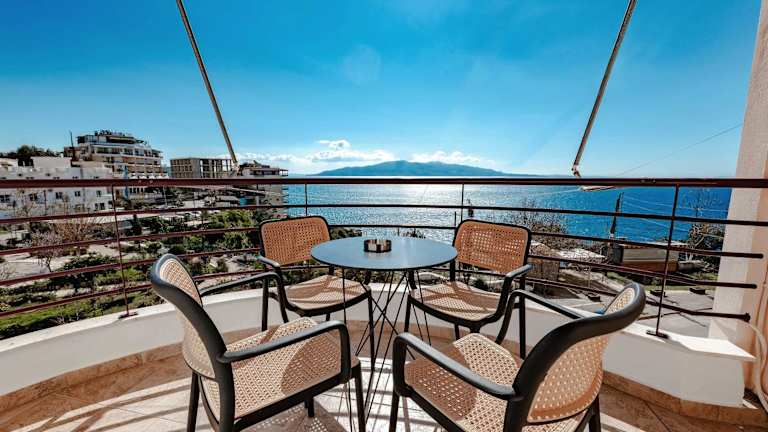 Die Unterkunft verfügt über komfortable Zimmer mit Balkon und Meerblick. Jedes Zimmer ist ausgestattet mit einem Sitzbereich, einem Satelliten Flachbild-TV, einer voll ausgestatteten Küche mit Kühlschrank und Ofen sowie einem eigenen Badezimmer mit Badewanne oder Dusche und Haartrockner. Zu den zusätzlichen Annehmlichkeiten gehören kostenloses WLAN und ein privat parkierbarer Platz.