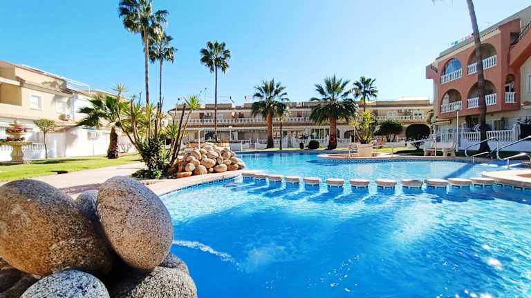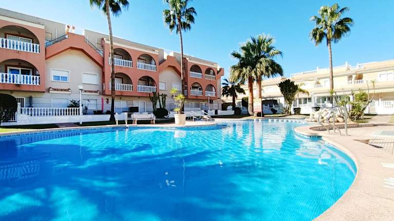 Sunny Blue Home - near Pools & Beach besticht durch Übernachtungsmöglichkeiten mit kostenlosem Wifi, einer Klimaanlage, einem Aussenpool sowie einem Garten. Die Unterkunft bietet einen Balkon mit Gartenblick.