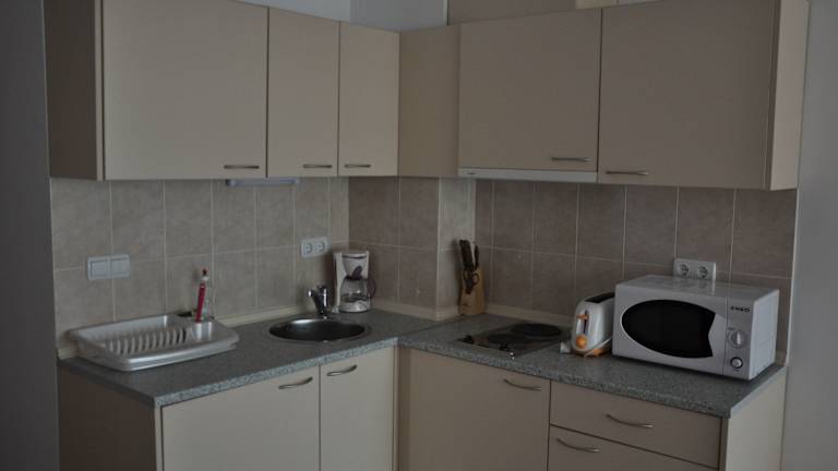 Die Zimmer sind klimatisiert und verfügen über einen Balkon, ein Doppelbett, ein Sofabett sowie eine Kochnische mit Kühlschrank, Mikrowelle und Tee-/Kaffeemaschine. Ein nicht nur für Familien, sondern auch für Nichtraucher geeignetes Ambiente ist gegeben. Im Badezimmer sind eine Dusche und eine Badewanne vorhanden.