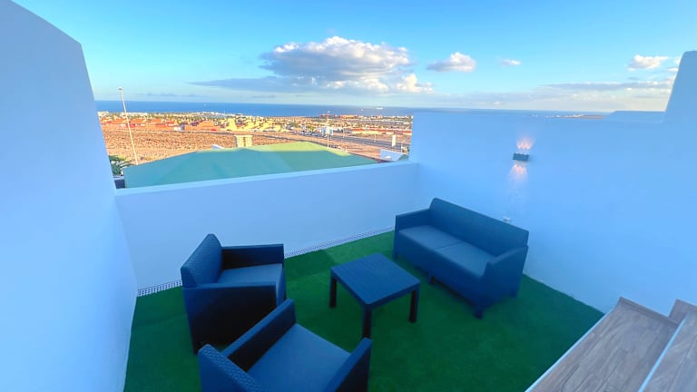 Entspannen Sie in unseren Bungalows mit Meerblick Willkommen in den Sunny Silence Sea View Bungalows, Ihrem Rückzugsort für einen schönen Urlaub auf Fuerteventura. Genießen Sie die friedliche Atmosphäre und eine tolle Aussicht. 330 Sonnentage, feinsandiger Strand, Surfspots, ein Gemeinschaftspool, eine Terrasse mit Blick auf den atemberaubenden Sonnenaufgang über dem Meer und vielleicht ein Rundflug oder Sonnenaufgangsflug über die Insel machen den Urlaub in den Sunny Silence Sea View Bungalows unvergesslich. Nur 10 Minuten vom Flughafen entfernt befinden sich unsere Meerblick- Bungalows in Caleta de Fuste. Diese können mit bis zu vier Personen belegt werden und laden mit ihren je zwei Sonnenterassen mit Lounge-Ecke und Sonnenliegen zum entspannen ein. Die Bungalows sind für Kinder ab 6 Jahren geeignet, Buchungen mit jüngeren Kindern sind nicht möglich. Wir freuen uns auf Ihren Besuch. Sea View Bungalows www.fuerteventuraholiday.de info@fuerteventuraholiday.de +34604463168
